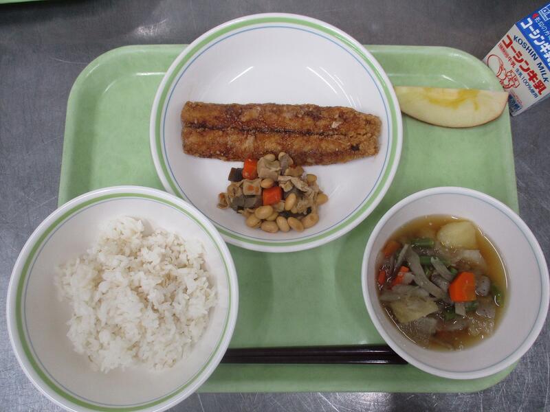 一覧へ 白飯 日時 2025年12月11日(木) 公開対象 給食献立 詳細 牛乳 白飯 秋刀魚の蒲焼き 五目豆 ごま仕立てのみそ汁 りんご 作成者 酒井根中学校 更新日時 2025-12-11 12:08:32