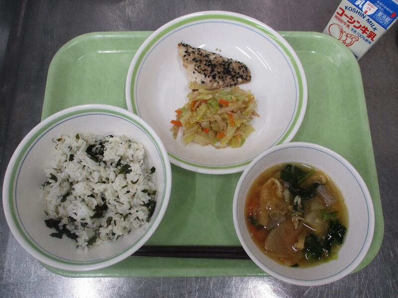一覧へ わかめごはん 日時 2026年02月05日(木) 公開対象 給食献立 詳細 牛乳 わかめごはん 鯖の南部焼き 切干し大根のサラダ 豚汁 作成者 酒井根中学校 更新日時 2026-02-05 12:06:36