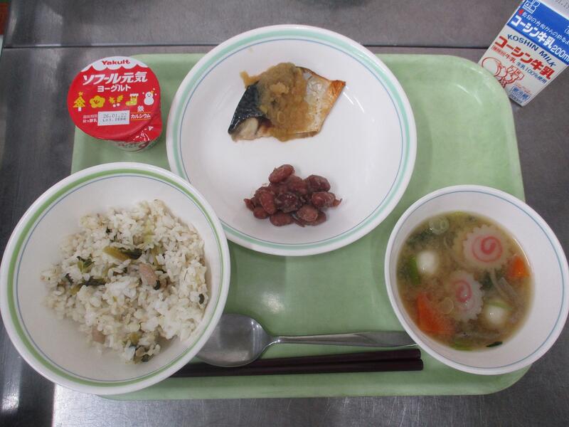 一覧へ 七草ごはん 日時 2026年01月08日(木) 公開対象 給食献立 詳細 牛乳 七草ごはん 鯖のおろし煮 金時豆の甘煮 白玉みそ雑煮 ヨーグルト 今日の七草ごはんには、せり、すずな(かぶ)、すずしろ(大根)を入れました。 作成者 酒井根中学校 更新日時 2026-01-08 12:14:17