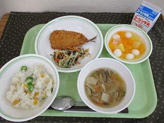 七夕コーンごはん・イワシのフライ