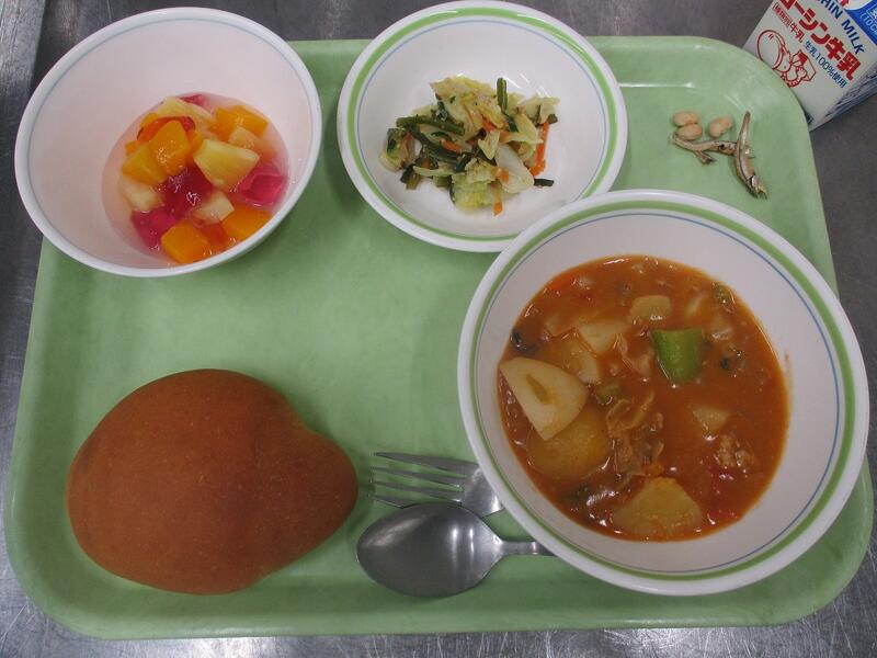 一覧へ テーブルロール 日時 2025年12月12日(金) 公開対象 給食献立 詳細 牛乳 テーブルロール ボルシチ 茎わかめサラダ ゼリーポンチ 大豆小魚 作成者 酒井根中学校 更新日時 2025-12-12 12:18:08