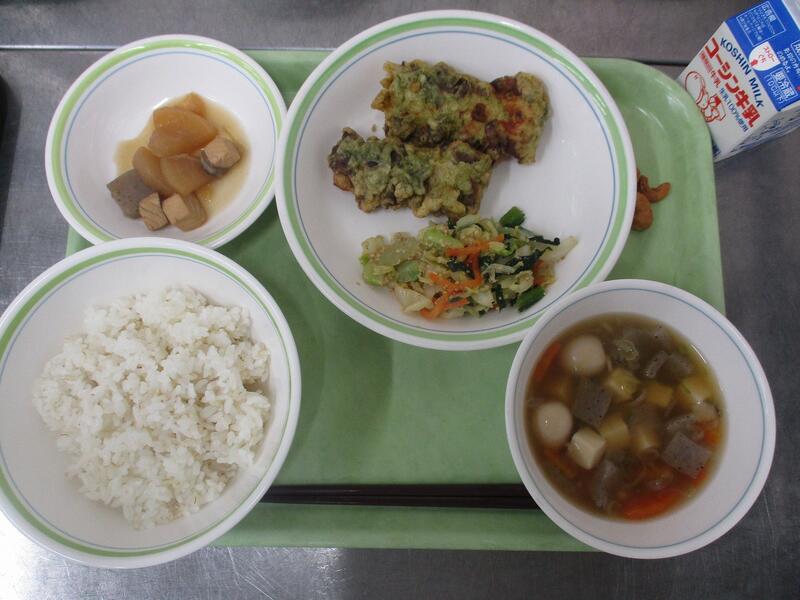 一覧へ 白飯 日時 2025年12月15日(月) 公開対象 給食献立 詳細 牛乳 白飯 ちくわの磯部揚げ ごま和え ぶり大根 吉野汁 炒りカシューナッツ 作成者 酒井根中学校 更新日時 2025-12-15 11:59:14