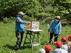 下田の杜フォーラムの方たちから「下田の杜」はどんなところか,どんな生き物が住んでいるのかお話を聴きました。