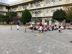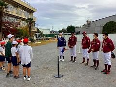 11/29(火)に本校6年生を対象に,ティーボール出前授業が実施されました。講師は柏市出身の元プロ野球選手谷沢健一さんです。現在は社会人野球チーム「YBC柏」の総監督を務めています。選手の方4名と一緒に「バッティングとキャッチング」の技術を教えていただきました。実際に子ども達もティー台に置いたボールをバットで打ってみました。丁寧に教えていただき,ボールが遠くに飛ぶようになると,「やった!」「当たった!」などの声が聞こえてきました。「キャッチングは生卵を取るように優しく受けとるといいよ」と言われると,「体育の授業でやってみよう!」ととても興味深い様子でした。貴重な経験ができました。