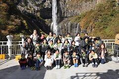 華厳の滝へ向かう道中。色づく日光の大自然,いろは坂を下るバスの運転手さんの技術に感動して声をあげている児童が多くいました。華厳の滝では,流れ落ちる水の迫力を観瀑台から眺めました。