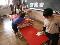 そして,入学から1ヵ月。1年生もこうして配膳の準備にかかわれるようになりました!