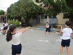 理科の「とじこめた空気や水」の学習で閉じ込めた空気や水は体積がどう変わるかを学習しました。今日は,それを確かめるため,空気鉄砲で的あてをしたり,水鉄砲をしたりして学習理解を深めました。