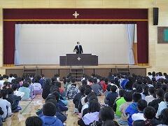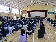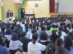 最後に、転校するお友達の紹介を聞き、全校児童で校歌も歌いました。