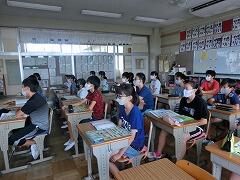 この時期,各教室で始業式を行うことは,感染症対策であると同時に,熱中症対策にもなっています。