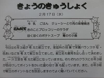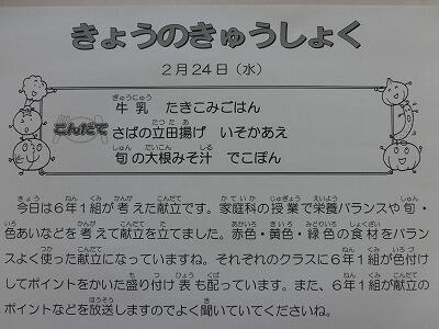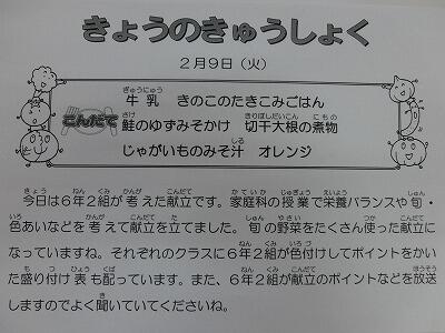 2月9日(火)、17日(水)、24日(水)の3日間は6年生考案給食でした。