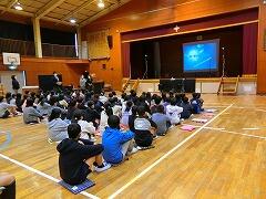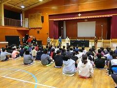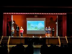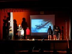 映像や音響が響きわたる中,子ども達の朗読が始まり,聞いている子ども達も朗読劇の世界に引き込まれていきました。