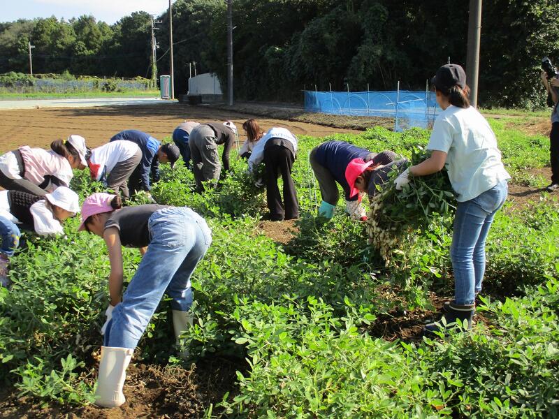 農業体験➜落花生の収穫と「道の駅しょうなん」で直売所体験をしました。収穫した落花生をもらいました。自分達で収穫した落花生は、「おおまさり」という品種でとても美味しかったです。
