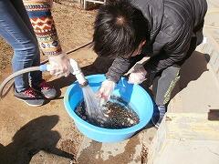 翌日,さけたちの水槽をみんなで片付けました。冷たい水を我慢しながら,石やフィルター,水槽を洗い,氷を捨てました。その間にも「さけたち,元気かな?」という声。みんなで育てた東っ子さけ,大きく成長して,戻ってくるといいですね。