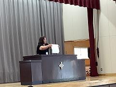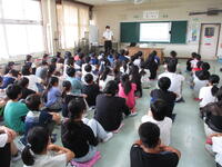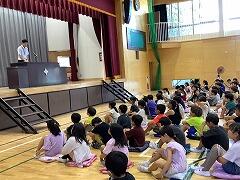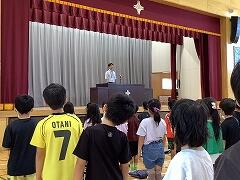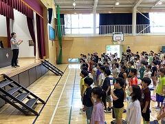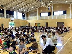 校長先生のお話の中では、特に子どもたちが真剣に聞く場面がありました。A4サイズの紙をくしゃくしゃっと丸めて