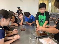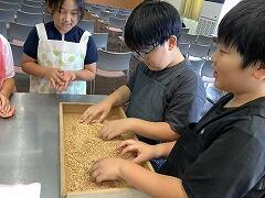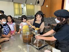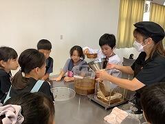 「キッコーマンもの知りしょうゆ館」では、工場の見学と醤油作り体験を通して製造工程を学びました。醤油作り体験ではおせんべいに醤油をぬって試食をしました。香ばしい良い匂いのおせんべいを美味しそうに食べていました。