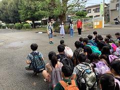 リーダーの5・6年生が下級生に声をかけ、探検をするチームのメンバー同士で挨拶をしました。