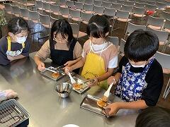バスに戻った子どもたちは、おなかがぺこぺこです。お家の人に作ってもらったお弁当を美味しくいただきました。