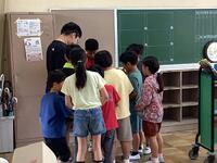 学校探検ではクイズに挑戦しますが、いつもより小さなグループになるためチームワークが大切になります!