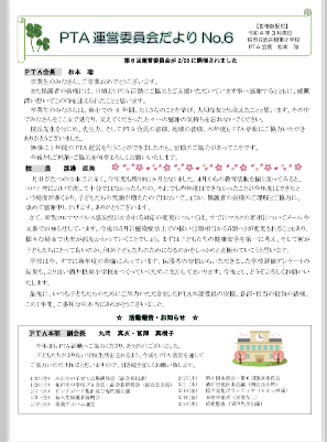 この一年間、PTA活動にご理解とご協力をいただき、本当にありがとうございました!