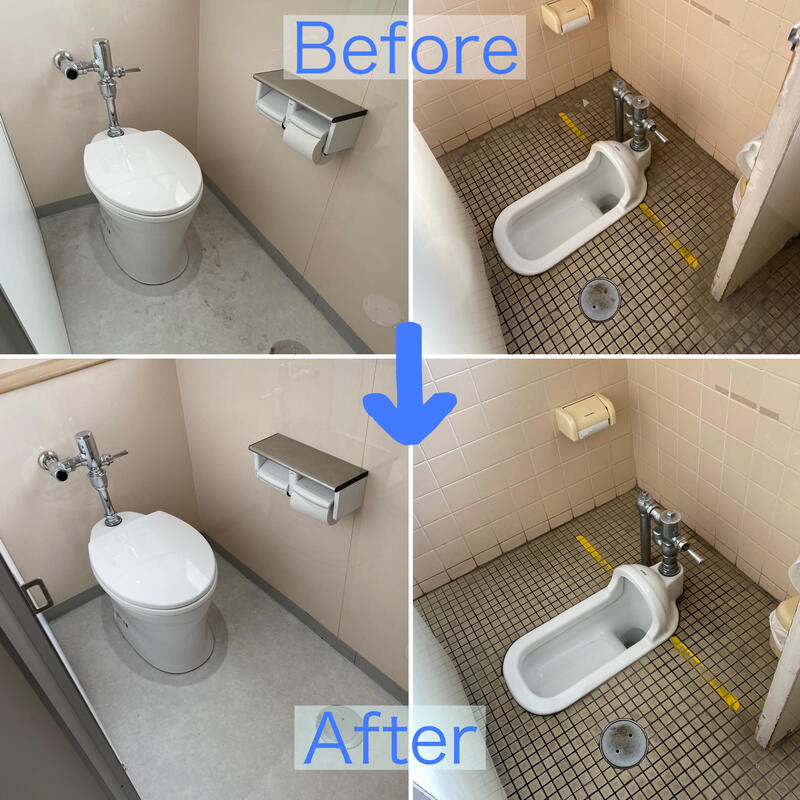 2年生のトイレは少し古いので、怖がる子供もいるのですが、そんな子供たちが安心して入れるようにと、ベテランの保護者の方々が明るいトイレを目指し、壁や床までピカピカに!