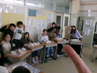 授業終了後は、各クラスに千葉大学生と一緒に「給食」を食べました。