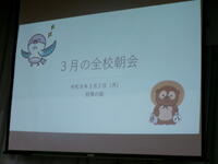 3月の全校朝礼は,1年生から6年生まで全学年がそろう最後の集会です。