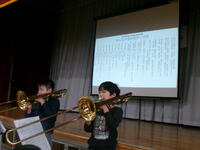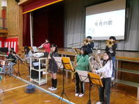 今日は、酒西小の特設吹奏楽部の伴奏で、全校合唱を行いました。
