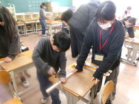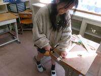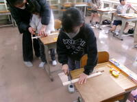 3年生の図工で「のこぎりザクザクつないでつけて」という学習をしています。