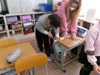 授業終了後は、各クラスに千葉大学生と一緒に「給食」を食べました。