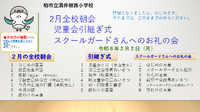 3/2(月)全校朝会の後に,児童会主催で「スクールガードさんお礼の会」を実施しました。