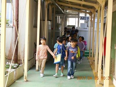 1年生と2年生で学校たんけんをしました。なかよく手をつないでたんけんしました。