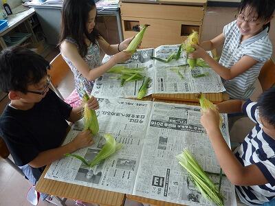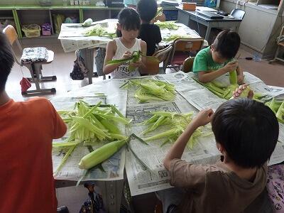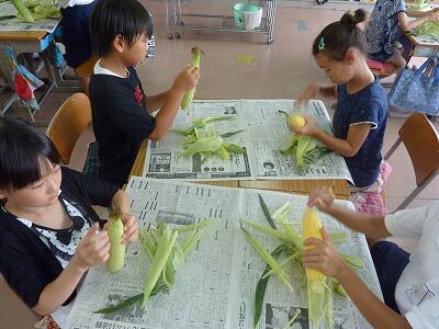とうもろこしの皮むき(4年生)