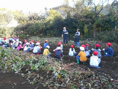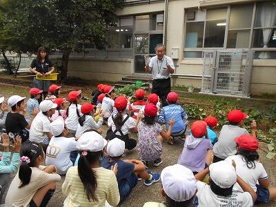 事前に学校の畑で同じサツマイモを観察しました。秋谷先生が説明してくれました。