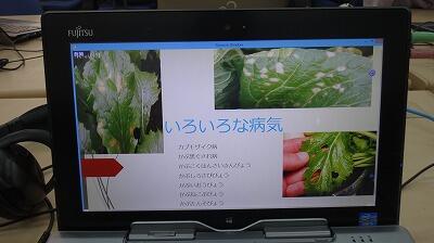 プレゼンテーションソフトを使って,かぶの作り方やたねの種類,病気,かぶ料理のレシピ等について,班内で役割分担して発表しました。