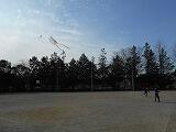 校庭では「凧揚げ」を教えてもらいました。