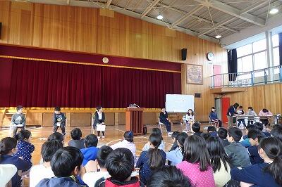 2・3時間目に「ありがとうの会」がありました。卒業してしまう6年生に,感謝の気持ちを伝えようと,どの学年も様々な発表をしました。歌あり劇ありダンスありと,とても楽しい時間となりました。6年生からは全クラスにペーパーホルダーのプレゼントがありました。
