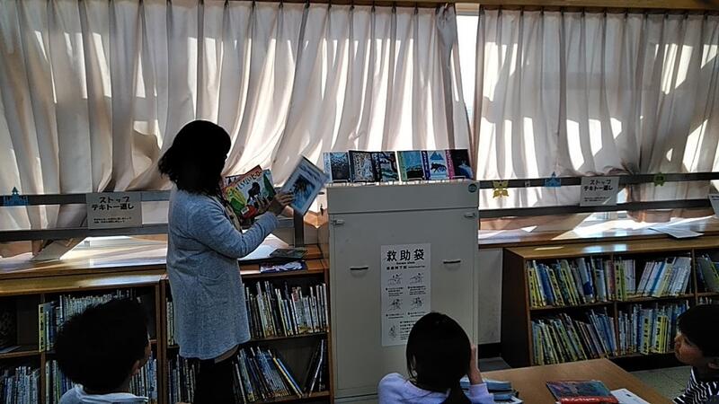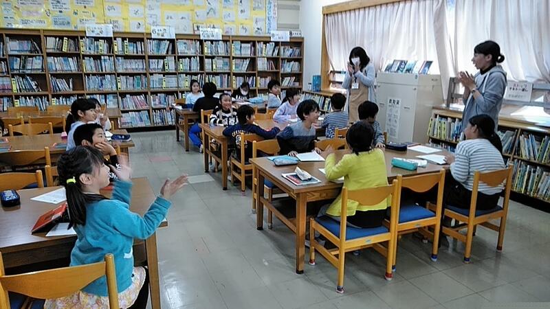 今日は、前の図書の時間に読んだ「あらしのよるに」(やぎとおおかみとの夜のできごとの話)の感想を発表しました。特に、この物語の続きはどうなるか?という話し合いでは、「オオカミがやぎを食べてしまう?」「なかよくなる」などいろいろな意見が出て、大変盛り上がりました。この読書会は、図書館指導員の大石先生の提案で行われました。