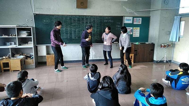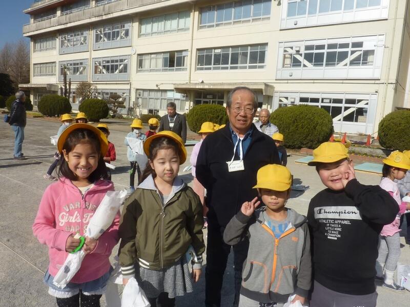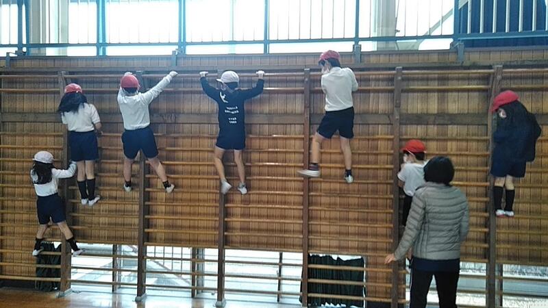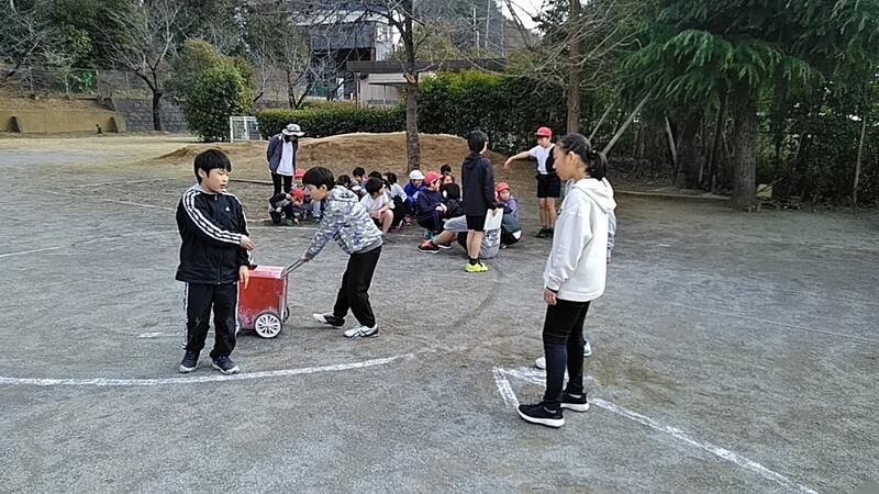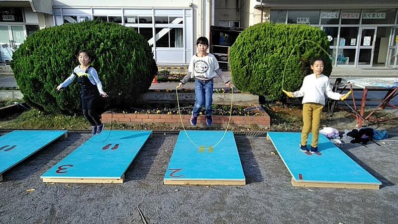 おやじの会有志(野村会長、大澤さん、前川さん、星井さん)が「なわとびジャンプ台」をつくってくれました。これからも、寒さに負けず「なわとび名人」をめざしましょう!