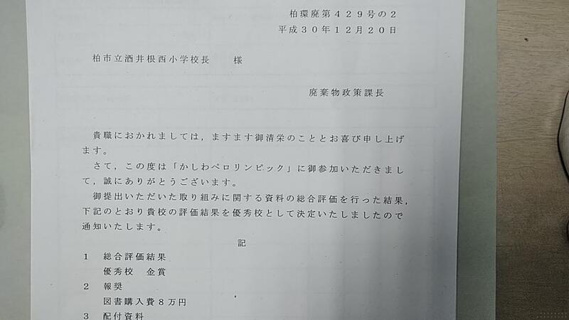 千葉県吹奏楽コンクールC部門金賞受賞の酒井根西小学校の吹奏楽部も教育奨励賞を受賞しました。本当によくがんばったと思います。