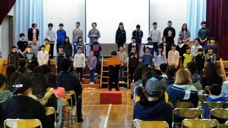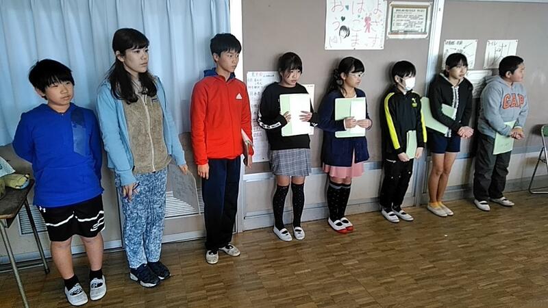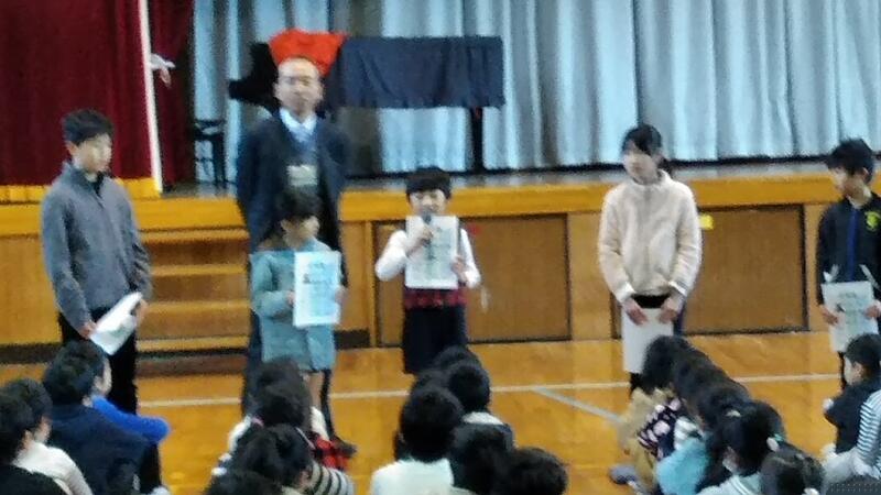 ↑2年生も成長したことを発表してくれました ↑担任が通知表を一人一人渡します