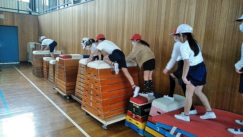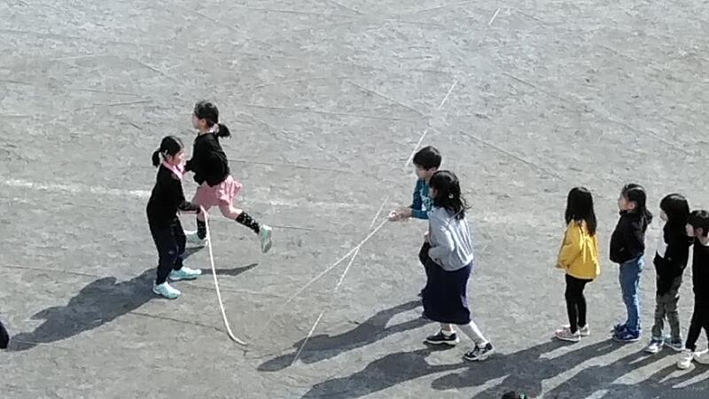 ←軽やかに「二重跳び」を跳ぶ4年生女子3人組