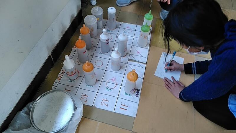 ↑段ボールにおおわれた水槽 ↑専門指導員の秋谷先生が持ってきてくれました