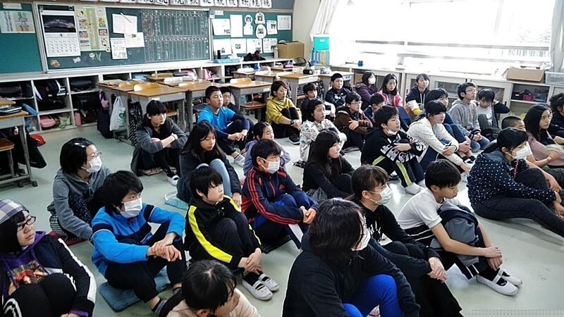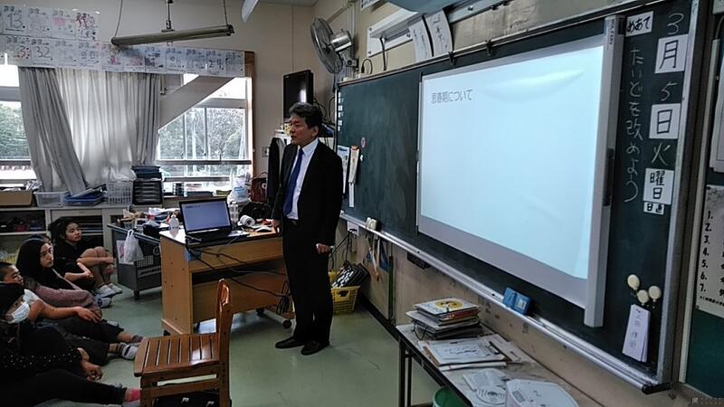 ↑下校前に全員体育館に集合し、石橋先生の話「交通事故に気を付けて!」を聞きました
