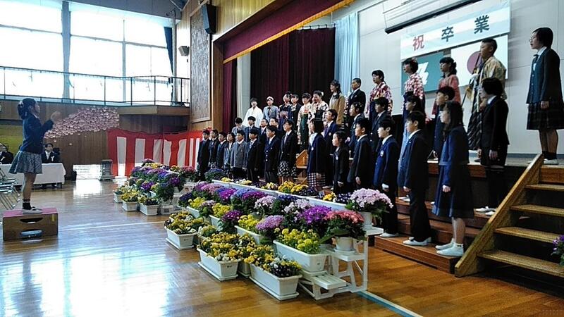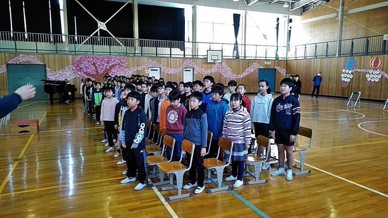 ↑6年生はひな壇に上がり対面します ↑在校生(4,5年生)の歌もなかなかです