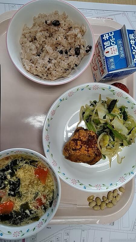 ↑3/13赤飯鳥の唐揚げ他 ↑3/14きのこシチューごぼうサラダ他