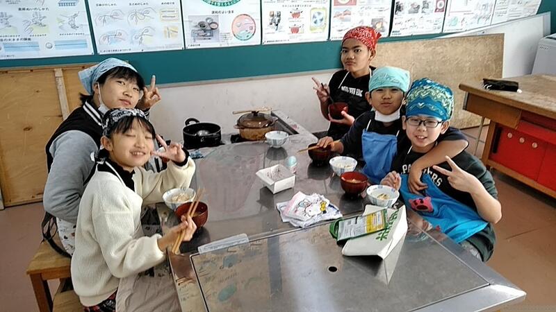 ↑来年4月から、この校舎(左)でおいしい給食(右)を一緒に食べましょうね!