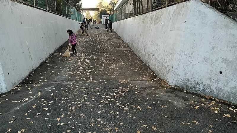 ↑最後のそうじ(6年生)            ↑最後のたいいく(1年生)