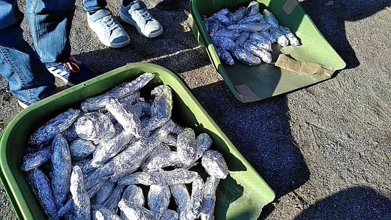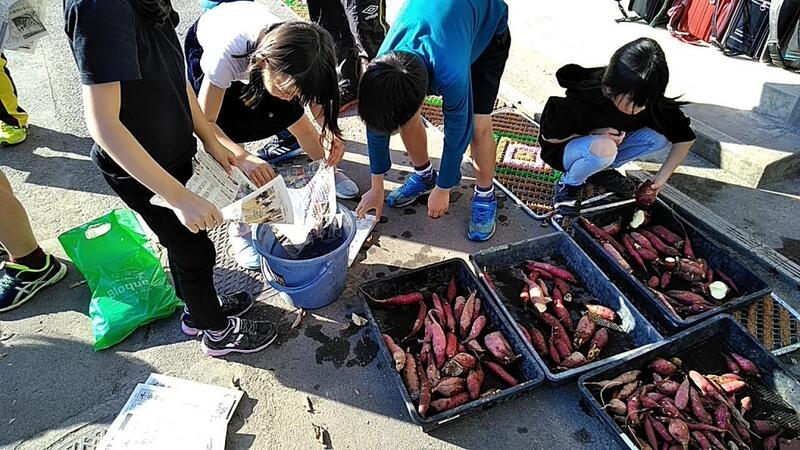 横尾さんの畑で育てたさつまいもを「やきいも」にして食べました。生徒指導アドバイザーの秋谷先生には準備から後片付けまで大変お世話になりました。