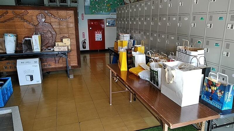 ↑ぎんなん&瓦せんべいを売るNGC社員(後ろではぎんなんの袋詰め作業中)