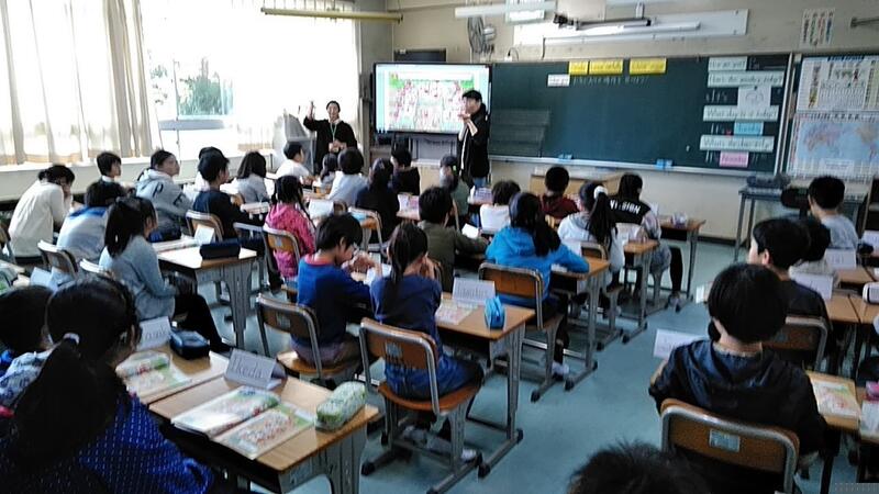 学校では、毎日毎日、いろいろな教科の授業が行われています。今日は4年生の外国語活動と2年生の図工を紹介します。